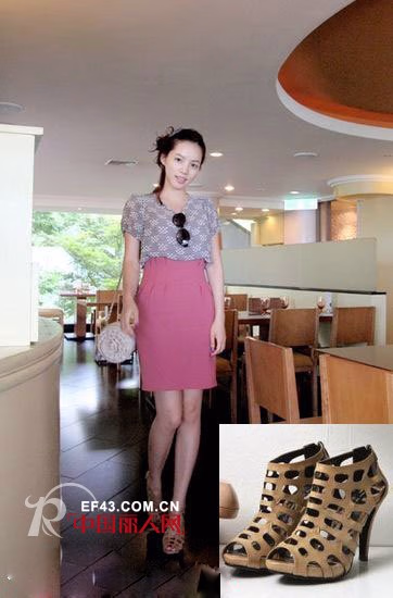 模特并不是一个高挑的美女,与上图的她是不是顿时显得增高了许多,高腰裙让她的身材比例fib提升,显得腿部格外的修长,恬淡的粉红色是女生们的最爱,配上一对高跟的罗马鞋,层次感十分强烈,同时再次变得更加高挑。