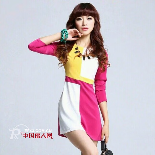 这件欧洲站的拼接撞色款修身裙由玫红,黄,白三色组成,几何的拼接撞色,精彩的撞色给人视觉上留下很深的印象。舒适的面料,修身显瘦的款型,衣链的点缀,适合各类型的女生。