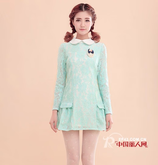 薄荷绿是春季最亮眼的颜色,即清爽又可人,蕾丝连衣裙不仅秀出单单的性感魅力,更重要的是赖斯连衣裙能够彰显女性魅力还适合任何场合穿的时尚单品,这款蕾丝连衣裙白色娃娃领设计更青春活力。