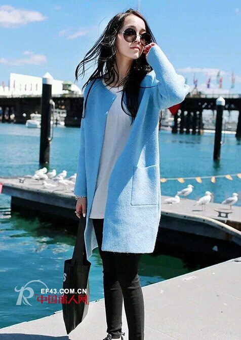 碧蓝的海水映着蓝色的天空白云,女人穿着蓝色的针织衫,清新又迷人的风格给人留下了很好的印象。这样简约韩版的款式还是很惹人喜欢。里面搭配一件白色的衬衫,更加的清新减龄。下面搭配黑色的铅笔裤,拉长了身材比例。