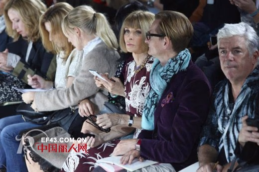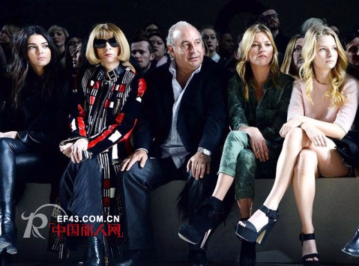 在Topshop Unique 2014秋冬发表,Anna Wintour和品牌老板Philip Green(左三)坐一起。
