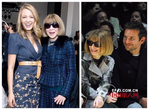 安娜与Bradley Cooper(右)在今年的MK发布会上,Gucci则与Blake Lively一起并排看秀。