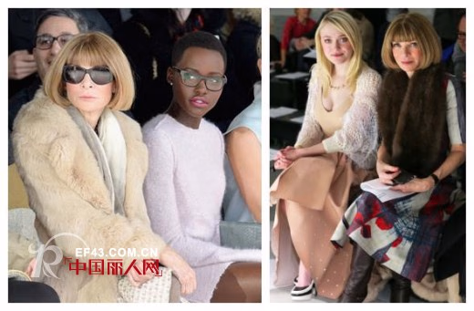 纽约时装周期间,安娜与《为奴十二年》女主角Lupita Nyongo(左)在Calvin Klein 秀场,右边则是与Dakota Fanning一起在Rodarte看秀。