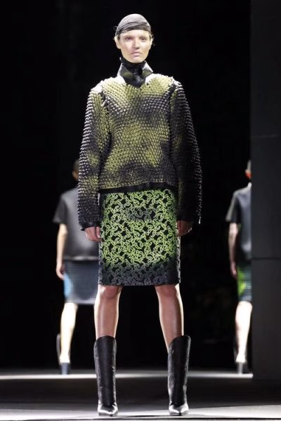 身着王大仁设计的姑娘都是这个钢筋铁骨城市中的骁勇战士。远离纽约时装周标志性的林肯中心,Wang 这次将所有时尚达人全部请到河对岸的布鲁克林海军造船厂内,系列也正与本区卓越的音乐灵感、街头风格相互呼应,凸显 Wang 一直致力于拓展的城市活力。他的设计总能准确把握时装之脉,以这次具有多个口袋设计的包袋为代表,其强大的实用性及视觉冲击都让人不难预料到下一季街拍中的轻松走红。结尾部分,模特站立在特定温度射线环绕的舞台中央,身上外套的彩色纹样随热激活技术的触发逐渐变幻出多重色彩,令人惊叹。