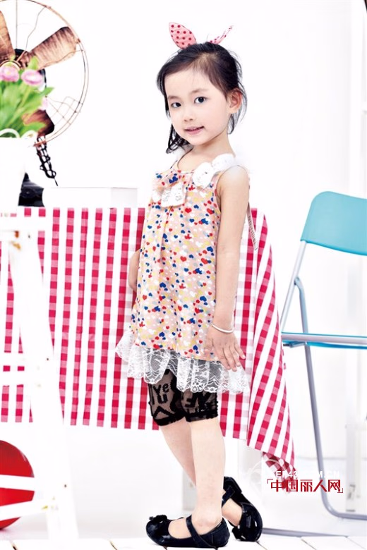 这件无袖吊带裙由彩色的小波点点缀,素雅活泼,灵动可爱。胸前的蝴蝶结装饰的很是符合这个年纪的小女生。扎起来的马尾会更加的精神哦。下面穿上一条黑色的蕾丝裤,打造时尚女生。