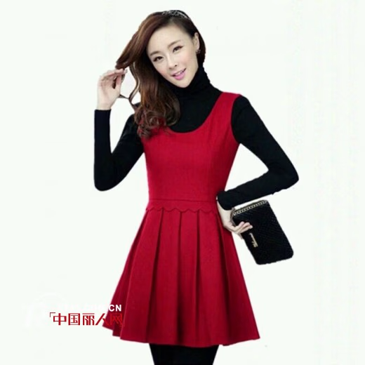 这件无袖裙大红色十分的热情喜庆。低领的设计,可以搭配高领衫或者套上一条丝巾,时尚百变。修身的设计,宽松的裙摆风琴褶的设计,别有一番滋味。里面搭配黑色的针织衫,下面一条黑色的丝袜,红黑绝对完美的搭配哦。