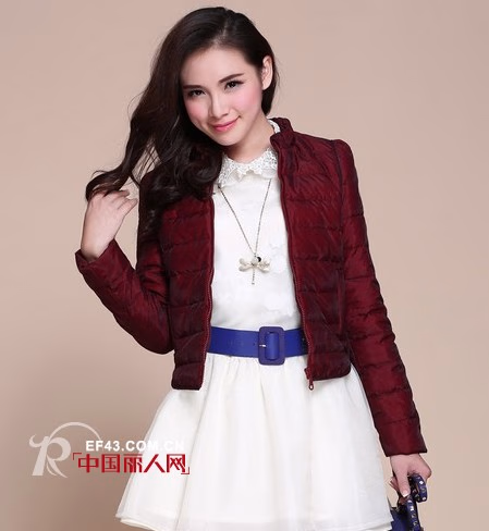 枣红色的棉袄怎么搭配呢?这件短款的棉袄波浪纹的设计,很修身。里面搭配一件白色的百褶裙,清纯与时尚同在。这件白色的裙装也很有特点。蕾丝领子的点缀,毛衣链的装饰,蓝色腰带的勾勒,塑造了一个完美的女人。