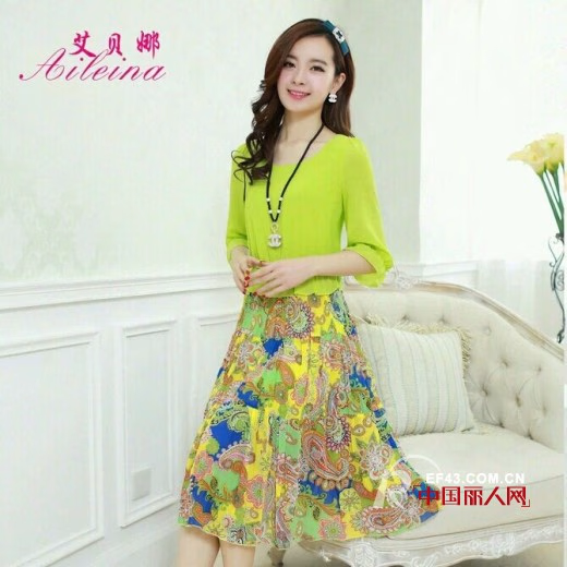 夏季的炎热会给人带来十分烦躁的心情,但是如果看到一穿着清凉,飘逸清新的美女,顿时凉快不少。这套裙装是由荧光绿和大印花拼接而成。衬肤减龄的装扮你也可以拥有的哦。如图中,搭配一条衣链,不媚不俗,清新可人。