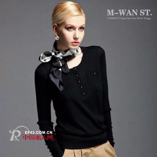 圆领的套头衫衬托的肤色白皙,勾勒的锁骨线条迷人性感。一条丝巾帮你打造若隐若现的骨感美。衣领,袖口扣子的点缀凸出了衣服的精致。下面搭配卡其色或者土色的休闲裤,就能美美的出门了。