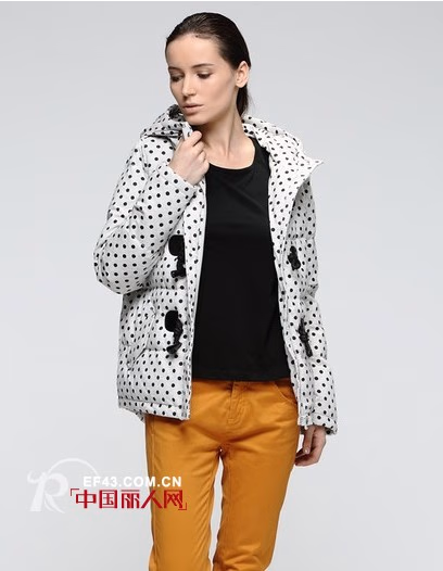 棉质面料的羽绒服是温软好穿却较为少见的款式,可以瞬间从流于俗套的设计中脱颖而出。俏皮波点是青春专属的活力感觉,学院派的牛角扣作为画龙点睛之笔,即使年龄近4打头也能穿出减龄效果。