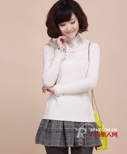 百褶半裙是追忆学生时代的制服情结,与之最为相衬的还要数款式简洁修身的上衣了。在高领上用珍珠与蕾丝加以点缀,简约却不简单,气质秀美的同时还起到保暖防风的作用。