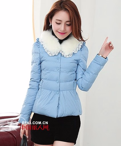 蓝色是小编最喜欢的色彩,蓝色的围巾,蓝色的牛仔裤,蓝色的包包,蓝色的羽绒服,这种努力向天空靠拢的色彩会让小编觉得心安。所以棉服也一定要有一件是蓝色的,配上白色的毛领,精致的蕾丝花边,还可以再享受一下学生时代的纯真。