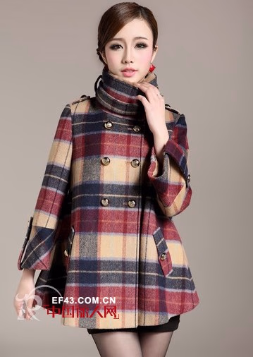 格纹可典雅可清新,一般而言大格纹会倾向成熟魅力。斗篷型大衣与生俱来的纯真气质与格纹的成熟气息混合,优雅与甜美并存。厚厚的立领御寒挡风效果极佳,也利于气场提升。
