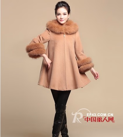 蓬松饱满的皮草赋予了简约斗篷款大衣与众不同的气质,将华美与高贵倾注。浅驼色的优雅得以提升,混合出贵妇般的典雅。褶皱立体衣摆如裙裾飞扬,腰身赘肉被巧妙修饰。