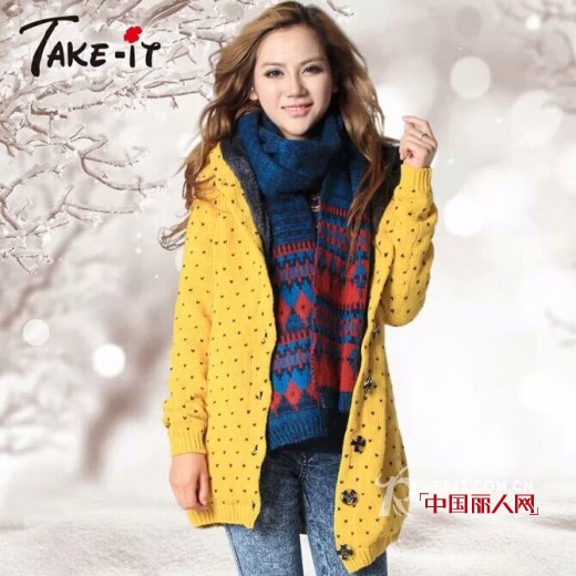 黄色也一直是冬季的主打色。飘着雪花的冬季,穿着这样一件黑色波点点缀的针织衫十分活力。再搭配一件羊毛围巾更加保暖时尚。下面搭配雪花纹的牛仔裤简约潮流,尽显学院风。