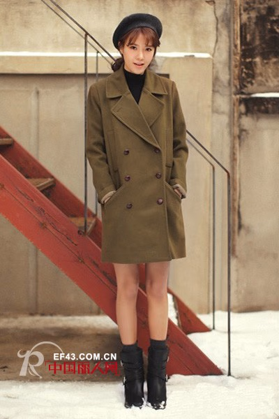 大衣只适合高挑身材的人穿,这个说法是谁说的,根本就不成立,只要会搭配,矮个子女生也可以穿上大衣,一样很酷,这款军绿色大衣款式,直筒的版型让人觉得很简洁,内搭黑色打底衫,绝对的显气质。
