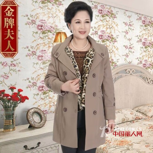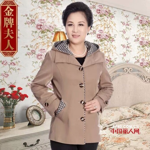 这件短款风衣细节格子的点缀,也是不输上面一款。银灰色百搭衬肤,复古的圆扣点缀,很有特色。下面搭配一条直筒裤就很好的呢。其实,妈妈们也曾年轻过,也是很爱时尚的呢。