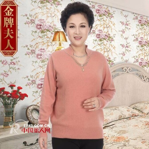 这件洋气粉小编很是看好。v领设计,彩钻装饰。搭配在里面,显瘦保暖。外面可以搭配冷色调的呢子大衣羽绒服之类。中老年更要靓要俏要时尚。
