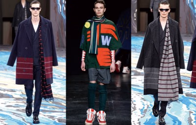 纵观2014秋冬男装系列,大牌似乎商量好的2014要把单肩披围巾打造成为最流行的男装配饰趋势,Louis Vuitton 也不能“免俗”。Louis Vuitton2014秋冬男装系列,“旅行”的主题下,融入了更多大自然的氛围,将大自然中的高山河流,火山岩浆,丛林等色彩元素汇集到本季的系列中来。条纹拼接和各种演变是主流款式。