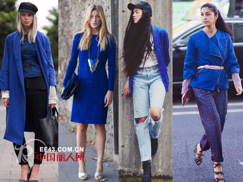 宝蓝色!显白+优雅+抢镜。欧美达人至爱宝蓝色,小编分享欧美街拍宝蓝色出彩美搭技巧,喜欢宝蓝色的你也不要错过!