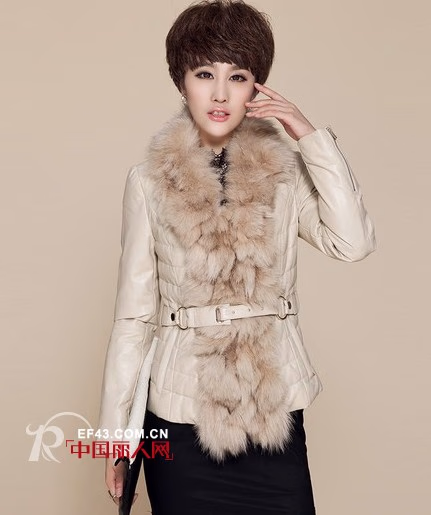 高密度的真皮避免了羽绒填充物钻绒的可能,同时也提高了挡风御寒效果,羽绒服的保暖功效更进一层。修身剪裁凸显腰身,强调苗条匀称的身形。蓬松大毛领华丽却不妖艳,衬托出清秀五官。