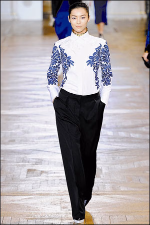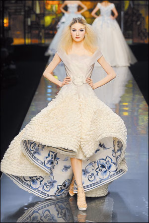 在2012巴黎秋冬高级定制大秀上,范冰冰在stephane rolland的秀场压轴登台,成为首位为巴黎高级定制时装周走秀的华人女星,而在国际顶尖品牌的时装秀上,中国超模也频频闪现,秦舒培、刘雯、孙菲菲、何穗、奚梦瑶等人把东方人的美与魅力植入国际时尚的灵感中。当然,看台的前排,更有无数中国女星的面孔;另有长城上的Fendi、东方明珠的Gucci、798的Marc Jacobs,大牌们都把自己的秀场搬来了中国,与这些最有标志性的建筑进行时间与空间穿越的对视……