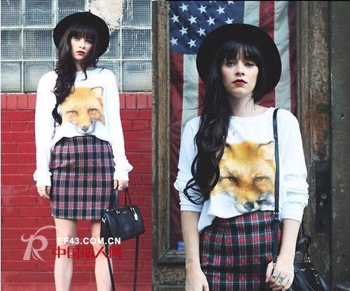 宽松卫衣+中腰裙这款卫衣比较有朋克的感觉,狐狸的设计是这款卫衣的亮点,妩媚的同时会有霸气的感觉,不会显得太过于女人味,格子裙的搭配会突出你的英伦风的感觉,整体感觉偏向于欧美风,超赞的显瘦搭配。