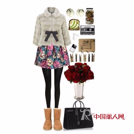 皮草是女性身份的象征,高贵气质的体现,这款短款皮草外套配上玫瑰蓬蓬裙,气质与可爱结伴而行,皮草上海点缀着蝴蝶结,非常少女的装扮减龄加分哦。