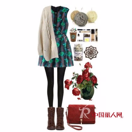 这件绿色的连衣裙则偏向成熟,简单配以针织毛衫,打造成熟优雅的look。如果 要选一种颜色与墨绿色成为绝配,那必须是酒红色,搭上酒红色的单肩包为造型加分。