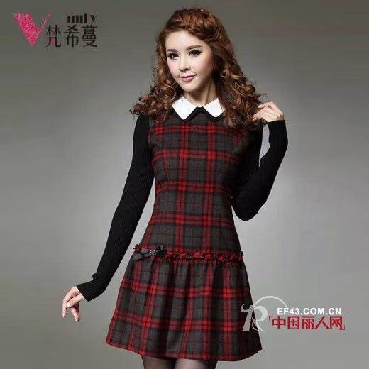 这件风情万种的苏格兰格子裙和黑色的针织袖拼接在一起,显瘦修身,时尚大方。腰处带子的装饰别具匠心。白色领子的点缀点亮整体。很有韩国学院风。褶皱的裙摆灵动俏皮,尽显青春活泼感。