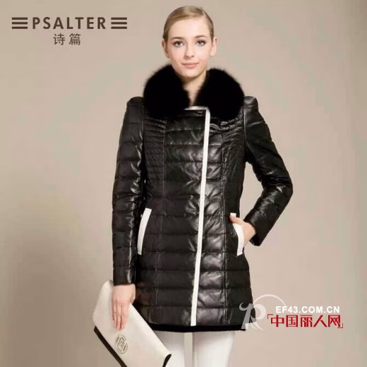 经典的黑色羽绒服修身显瘦,在冬季里,黑色的当然是人们选择较多的,因为它适合各个年龄层次的女人。白色的斜插式口袋点缀,没有纯黑色的单调。黑色的貂毛领时尚保暖。衬托的女人肤色白皙,高贵典雅。