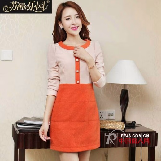 这件裸色和橙红色拼接的连衣裙舒适保暖的面料,韩版修身的设计,适合各种身形的女生。略带弧度的圆领,珍珠扣子的点缀,为整体增添了几分甜美。纯白色的蕾丝裙比想象中多了分清纯。