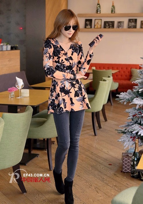 如果想挑战另一种味道,时尚印花V领修身长袖衫+紧身小脚裤,抢眼的橘色搭配上黑色印花,收腰设计秀出好身材。不仅很有气质,还让多了一些个性酷劲,少了一点幼稚感,是成熟女性的必备打底款式搭配哦。
