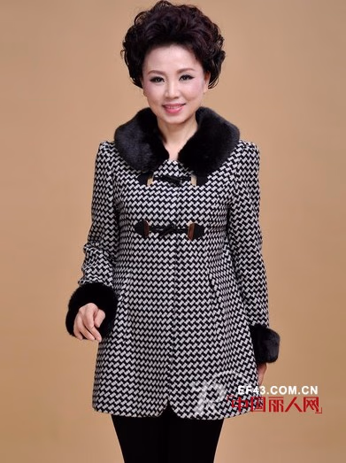 俗话说,女儿是妈妈的贴心小棉袄,在冰天雪地的冬季带一件暖暖的大衣送给妈妈,是非常明智的选择。经典的黑白配色不挑人,衬托出老妈风韵不减的优雅气质。皮草毛领点缀,提升整体气质。