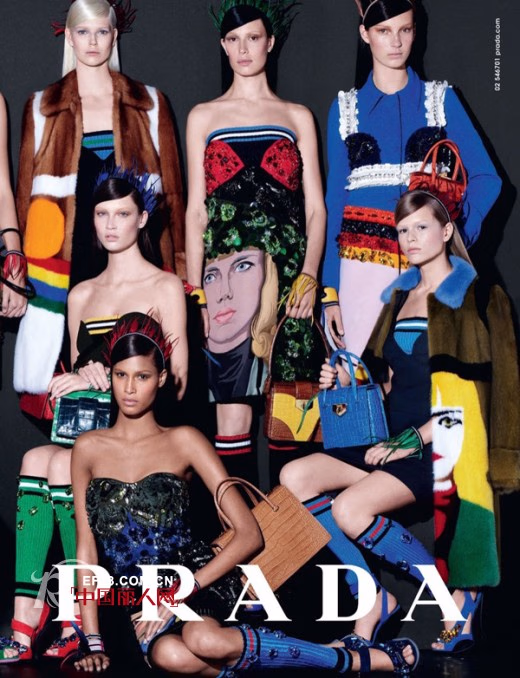 近日,Prada(普拉达)2014春夏系列广告大片曝光,这一季的硬照启用了新面孔,由超模Ola Rudnicka、Sabrina Ioffreda、Julia Bergshoeff、Maarjan Ridalaan、出演早春广告的Anna Ewers和维密超模Cindy Bruna共同演绎。身着普拉达(Prada)2014春夏系列彩色图案衣服的超模或坐或站,充满夸张图案及拼色设计,让这一季的广告充满活力!