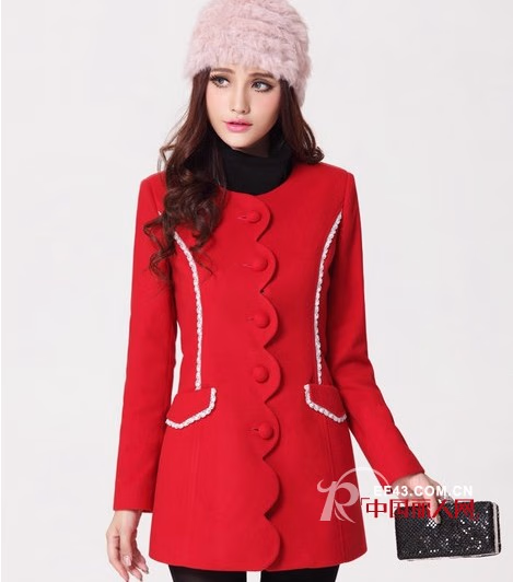 亮丽的火红色令人眼前一亮,瞬间点燃了冷清的冬,带来强烈的视觉效果。非常特别的门襟,花边形状甜甜的,只做了一点小改变,却有了不一样的感觉。在红色底色之上,少许白色小花边进行点缀,很俏皮哦。