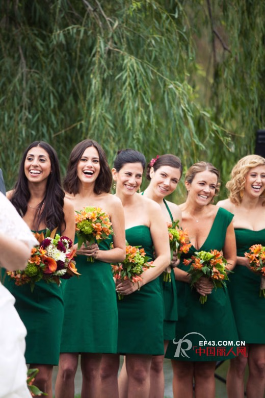 搭配支招:苹果绿、薄荷绿等都是伴娘礼服的绝佳选择,清新而高雅,并不失活泼感。面料用带有光泽度的缎面或雪纺来演绎,增添华贵感。同时选择柔和的珍珠或者小面积的钻饰,能够让绿色伴娘服更加清新淡雅,华丽无比。