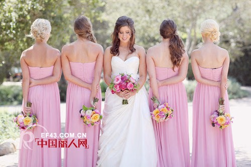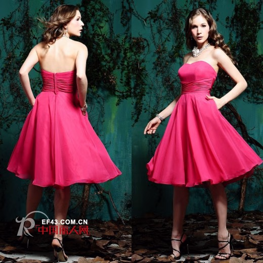 搭配支招:如果新娘的婚纱有少许玫红色的点缀,这种款式的伴娘服则是最佳选择。如果觉得这种玫红色太过耀眼,也可选白色礼服,在局部,如腰带、织花等处用玫红色进行点缀。