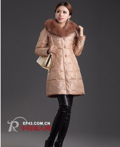 属于裸色系又具有光泽度的高贵香槟色是高档大气又不易过时的选择,连在专柜都极少出现,穿出去自然能吸引不少目光。百搭的特性使得它可以充分适应不同造型需要,真狐狸毛领极显质感,端庄而不俗。
