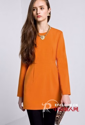 橙色被称之为最具职场亲和力的颜色,明艳活泼又坦率大方,不咄咄逼人也不平淡无奇。利落大气的剪裁特别适合职场人,气场与气质共同提升,极具大牌风范。高腰线与立体裙身组合,身材比例得到完美调整。