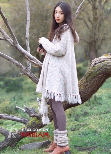 这件衣服很有特色的设计,很有日系风格。同色系的毛须点缀很有青春时尚感。前面的配套围巾暖意融融,有种想摘下来拿走的冲动。下面搭配紫红色的紧身裤就已经十分好看了。这样的搭配很有学院的风格。