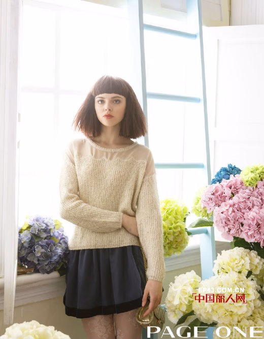 比如这件PAGE ONE少女装淡黄色的毛线衣,主色采用黄色这一应用十分广泛的暖色系,给人以快乐、温暖、轻快的感觉。黄色还很巧妙地和周围环境、物体融为一体,烘托出少女清纯可爱与青春活力的特质。