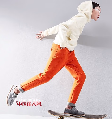 对于暖色系的运动卫衣裤,上衣一定要搭配高纯度的色彩如柠檬黄、湖蓝、流行绿、橙色、紫色或黑色、白色这样的就可以看上去像是拼色的搭配。