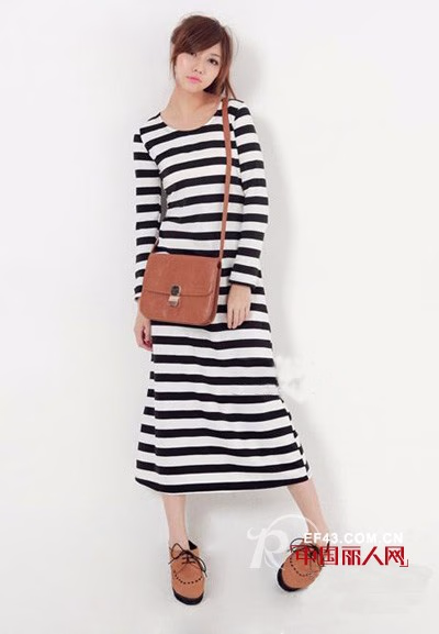 条纹装是经典不变的时尚款式,黑白条纹长裙,清新又晃眼的装扮,整体设计采用上小下大的版型,不仅可以高挑美眉,跑美眉也可以hold住哦,绝对的藏肉肉,出街,搭配一个短款,长款外套都绝对的帅气。