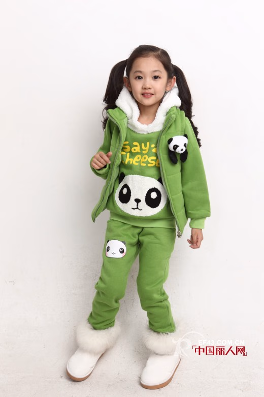 绿色一个清新的颜色,一个让大人们都喜爱的颜色,一个让孩子穿了更加有活力的颜色,绿色卫衣三件套款式,可爱熊猫图像点缀,很可爱,舒适的卫衣面料,柔软又时尚,简单大方的装扮,让冬季搭配不用愁。