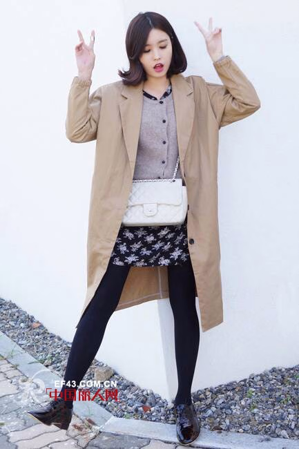 微有凉意的秋日,外面套上一件轻薄的风衣,非常时尚。这样长款的简约风衣最好搭不过了。里面可以搭配稍微亮色系的裙装。如果选碎花裙,在搭配一条项链,十分有女人味。