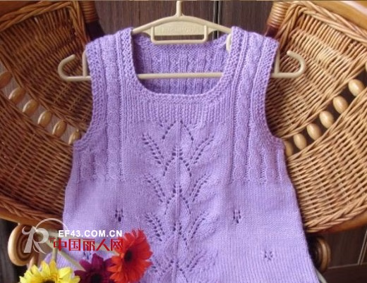 居中织胸前花样,同时2边均匀收针16-2-6.正身织够22公分长后在胸花左右2边对称织辫子针。织够27开挂。