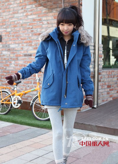 个人比较的喜欢蓝色,所以蓝色额棉服衣橱里肯定要有一个,不管是姐妹逛街,还是约会都会给人一种清新感,冬季清新棉服装扮,不仅可以很时尚还很显瘦,搭配打浅灰色打底裤,内搭连衣裙或是针织衫都可以。