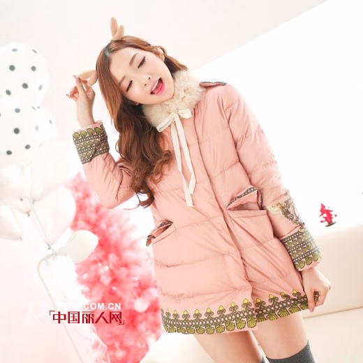 粉嫩的色彩就是会给人留下温馨浪漫的感觉。小印花的不规则点缀,很有田园气息,毛领的点缀保暖时尚优雅。这样的装扮人见人爱,再也不用担心在人堆里自己只是一个路人甲。可爱的毛领口袋很有小女生的天真。