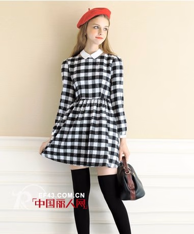 学院风不需要考虑太多东西,就像适应的人群多半还处于有梦想敢于追梦的年龄。英伦的格子风潮只需要黑白格就能让人爱上,腰部的抽褶收腰功力显著,肩领部的镂空让小翻领仿佛假领一样却能现出连衣的美丽。